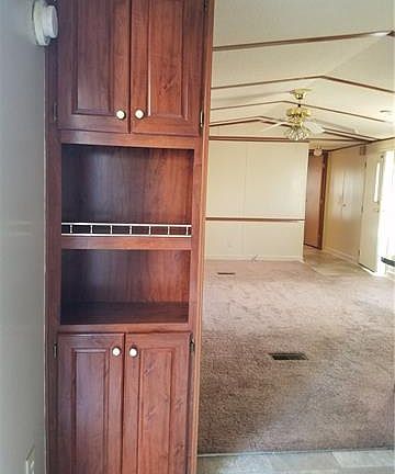 Immaculate single wide on almost an acre lot. Master bath has a large jetted tub, separate shower and double vanity. Master has a large walkin closet. Second bedroom has a large closet, a built-in workspace and is adjacent to second full bath. Kitchen has a built in table and the home has several sets of built in shelves . 30' x 30' wired garage with work areas and a double garage door. Large enough to house several vehicles or would be an excellent large workshop. Roof new in 2011, HVAC new in 2018