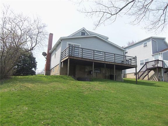 very clean home, eat in kitchen w/corin counter tops,loads of counter space & cabinets, updated main bath ,off of master br dining rm w/ glass sliding door leading out to 8x26 deck with great view ,double level lot goes down to rail road tracks, shed on property,all brick fireplace in basement ,glass block windows through out basement very cute home a