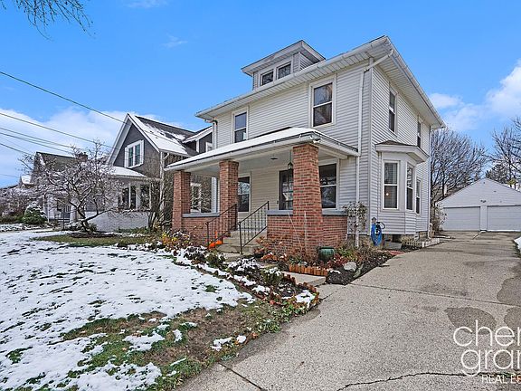 Rare opportunity to live in one of the most desirable Grand Rapids neighborhoods. Walkable to Farmers' Market, Pubs, Restaurants, & Grocery. This 3 bedroom, 1.5 bath, 2-story, Fulton Heights home offers many tasteful updates. The spacious eat-in kitchen is updated with white cabinets & stainless appliances. The baths are also nicely updated. The formal living room with new wood-like laminate floating floor is open to formal dining. Main floor office which is perfect for work-from-home lifestyle. Replacement windows, fenced backyard, rare 2-car garage & gracious front porch. Basement was fully waterproofed by Everdry in 2001. Warranty can be renewed by New Owner. Showings start 11/18 12pm. Offers due, if received 11/21 12pm.