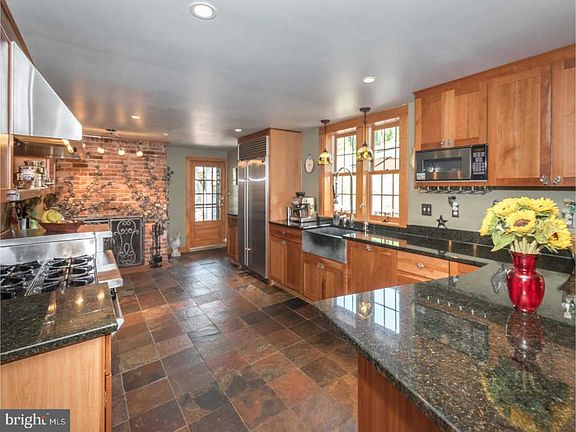 Gorgeous 5 Bedroom, 3.1 Bathroom Federal Style Brick Farmhouse, circa 1840, set back from a quiet road in Oxford. The home has been lovingly remodeled and retains many of its early features while incorporating today's modern conveniences. The Gourmet Kitchen is large and includes a commercial style stove, Fireplace and sitting area. The Formal Dining Room and Living Room both include Fireplaces and wood floors. The recently updated Master Bedroom Suite features a generous Bedroom, Walk -in closet and a fantastic new tile Bathroom with large shower. The property features beautiful mature landscaping and includes a stamped concrete patio, and ornamental fishpond. The home is set on 15.4 acres and features a 10 acre vineyard of vinifera wine grapes, providing the property with an nice income stream. In addition, the grid tied solar panels supply over 100% of the property's electric needs. Additional outbuildings include a Harvest Kitchen, Bank Barn with 4 horse stalls and a 2 car Garage. Schedule your private showing today and come and see all that this amazing property has to offer first hand.