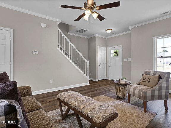 Ascend to the second floor, where the primary bedroom offers a serene retreat with an en suite that includes a double vanity, shower, and separate soaker tub. The two additional bedrooms, freshly painted and carpeted, provide versatile spaces for personal touch. Second story laundry room is finished with new LVP flooring and sink. Home also offers all new plumbing fixtures and lighting fixtures throughout.