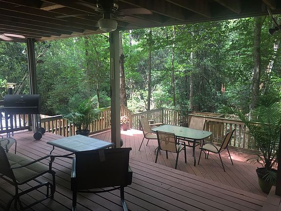 If you want PRIVACY in Lake Forest - this is the home for you! Sitting on 0.89 acres, this 4 BR / 2 BA home is on a COMPLETELY WOODED double lot on cul-de-sac with flowing creek along back property line. Enjoy privacy and solitude on one of the multi-level decks or in the large air-conditioned sunroom. Main living area has open floor plan. Updated kitchen w/ stainless steel appliances inc. fridge. Granite countertops w/ breakfast bar. Custom fireplace in den & master bedroom. Jetted tub in upstairs bath. Large laundry room. Huge 20'x20' workshop. Lots of storage areas. Freshly painted interior. New roof 2011. Termite Contract active since 1996. PRICED TO SELL! You won't find a better deal at $71/sq ft in Lake Forest!