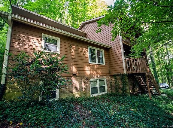 Beautiful Chalet style home in a hidden away natural setting! Great size living room with floor to ceiling stone fireplace, vaulted ceiling, exposed beams, rustic wooded walls. Bright updated kitchen & dining area! Awesome screened porch to sit and enjoy the surrounding nature. Huge master suite on 2nd level with private balcony & 2 walk in closets in bath and large vanity. Finished part of basement has den with another stone fireplace with woodstove, bathroom w/laundry, & 4th bedroom. There is great space in this rustic home! Great convenient location, and you'll feel like you're in the country! Private lot with small stream running through. Firepit area, enjoy all of the nature surroundings. Property adjoins a large wooded tract of land so you'll get to see wildlife while living in town. New outbuilding. Updates throughout yet keeping the chalet feel! Community pool nearby on Kingston