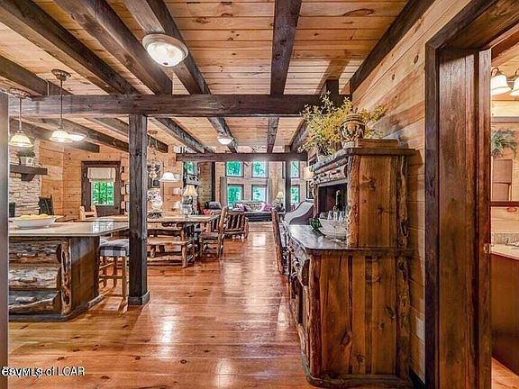 Amazing log home located in Eagle Rock Resort! 5 Bedroom, 5 Bath home that sleeps 13+ people! This gorgeous home is located on a ridge overlooking the valley and directly across from the ski slopes, has a large kitchen with a custom island and gas fireplace. The HUGE, vaulted Family Room has incredible views and features another fireplace, and access to a large, wrap around deck. First floor bedroom has attached bath. AGENTS SEE PRIVATE REMARKS