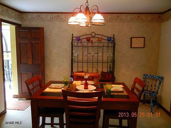 One story in Hollidaysburg School District with large level and full length deck with canopy cover. Beautiful kitchen with sun room, first floor laundry, larger than it looks. Approx 2400 sq. ft. A must see in Holiday Manor, Hollidaysburg School District located on cul-de-sac! Large LR with cathedral ceilings, french doors to deck, master bedroom with walk out to full length deck, partially canopy covered. 2 bedrooms on lower level. Updated master bath with jacuzzi tub and shower, beautiful cherry kitchen with corian counter tops, sun room off kitchen to enjoy the beautiful scenery. Irr lot 97x74x102x56.