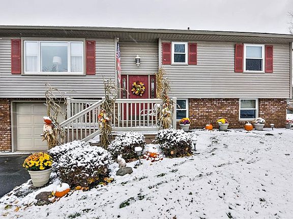 It doesn't get better than this 3-4 bedroom raised ranch! Main level consists of living(or dining) room, eat in kitchen has updated stainless appliances. Step down into a cozy fireplaced family room that overlooks a sparkling inground pool, 3 bedrooms and a full bath. Lower level features 2nd full bath and fourth bedroom or family room... you decide! Spacious laundry room. Loads of amenities, a few of which are! Central air, updated windows, new upper and lower decking, B-Dry. 1 stall attached garage with extra storage room!
