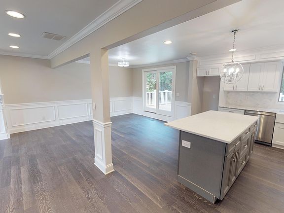 - RoomKitchenFeatures: Center Island, Granite/Stone Counter, Floor - Wood