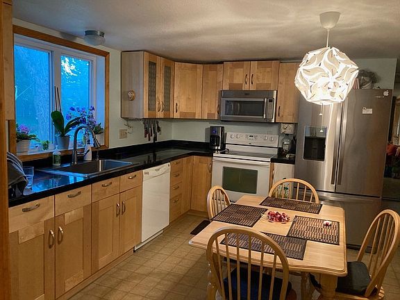 The house is in a convenient location with an established and friendly neighborhood. The house features two stairways to the second floor, one being a spiral staircase that leads to the office/bedroom, and the other staircase leading to a hallway that connects the bathroom and 2 other bedrooms. The main house has been heavily renovated, including HE gas furnace, an updated kitchen and laundry room on the first floor. Some rooms need improvement. The property has a paid-off 28-panel solar system installed. An additional (attached) building was built in 2013. This building includes a large, 2-car garage with a lot of storage space. The addition also includes a living area with all basic rooms needed. The second floor of the addition is connected to a deck facing the backyard which provides a great view of the property. The backyard contains multiple mature fruit trees and several berry bushes. The yard includes a toolshed and a chicken coop. A small portion of the property is wooded.