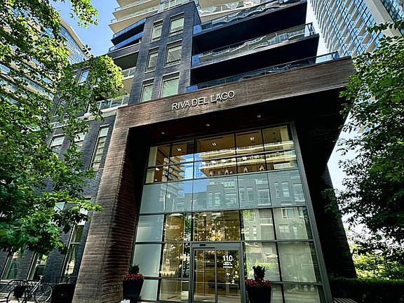 Welcome to Riva Del Largo! WOW!.. Steps to Humber Bay water park and lake with jogging, biking, walking trails, cafes and outdoor patios! Short drive to the QEW, Lakeshore Road and highway 427. Building offers billiards room, Theatre Room, exercise room, indoor pool with hot tub, Visitors parking, plus for a fee you can rent the party room and/or guest suite. This 7 year new corner suite on the 11th floor offers a built in microwave, stove, fridge and dishwasher. You also get 1 car underground parking spot and storage locker, 2 walkouts to a large exterior terrace. Please note this is a smoke free building, including the outdoor terrace. No pets please.