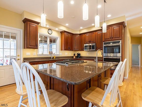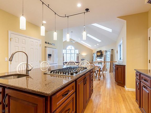 A luxurious home in Stonehedge, over 5,000 square feet of living space, featuring five bedrooms with one located on the first floor which is handicapped accessible from the oversized two car garage. The kitchen was upgraded by replacing the cabinetry, expanding the center island, adding quartz countertops, installing double ovens, along with a five-burner stovetop. Step out from the kitchen to a Trex wrap around deck and a sunroom. Hardwood floors throughout the first floor were re-finished and remainder of the home was re-carpeted. The spacious and bright family room features a Southern exposure, vaulted ceilings and a gas fired fireplace (to take the chill off on those cold winter nights).