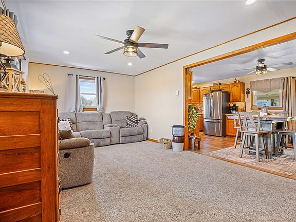 Well-maintained tri-level home on a spacious corner lot. This 3-bedroom, 2-bath home has an open-concept kitchen and dining area that flows right out to a large patio, perfect for entertaining! The cozy family room features a pellet stove, adding both warmth and efficiency. Recessed lighting throughout keeps every space feeling bright and welcoming. Practical perks include a 2-car garage, extra storage and a fully fenced backyard. The tri-level layout offers just the right balance of open living and separate spaces. The current owners have taken great care of this home, and it shows in every detail. Conveniently located with easy access to schools, shopping, and recreation!