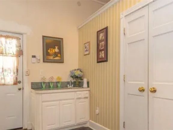 Features tall ceilings and has 5 fireplaces. Large swing and rocking chairs front porch! There is one bedroom downstairs and 3 bedrooms upstairs with two of them having access to the large balcony porch over looking the neighborhood! The Kitchen, dinning room, and living room are larger than most homes! The front door opens into the largest foyer ever seen, from front to the back door. You can place and eight foot plus Christmas tree in the foyer next to the front door than can be seen from the street. There is always something blooming from daffodils, hydrangeas, camellias, gardenias, magnolias, roses and more! Just so much more to share about this home must come to appreciate!