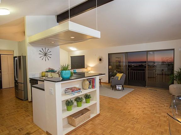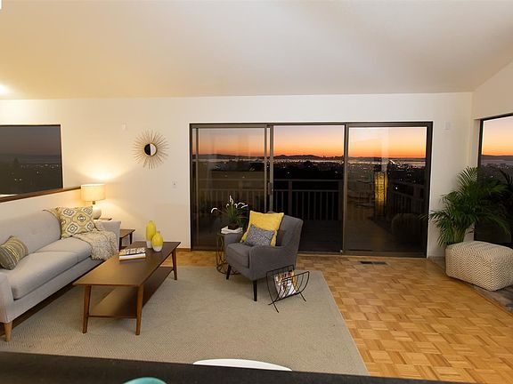 Sophisticated four bedroom, three and one half bath contemporary with open spaces and sparkling San Francisco bay and city views.