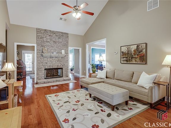 Venture outdoors to discover multiple entertaining spaces that are sure to impress. The highlight is the vaulted screen porch, perfect for enjoying summer evenings. Spacious decking flanks both sides of the screen porch, creating ideal spots for grilling and lounging. A beautifully accented stone patio awaits at the rear of the property, surrounded by lush landscaping and complemented by a charming stone planter.