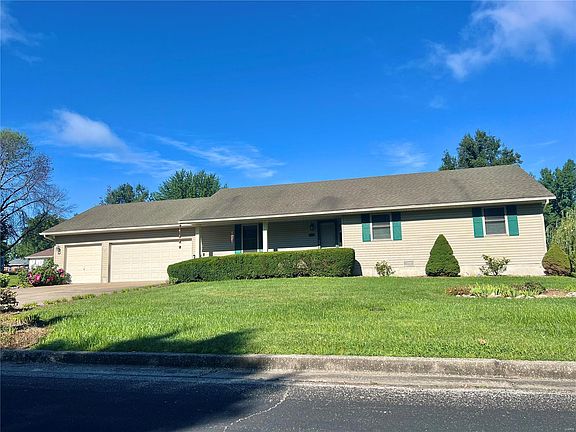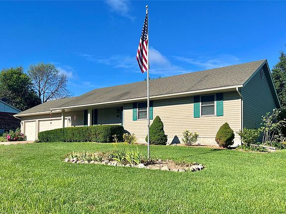 Darling home with large rooms has 3 bedrooms, 2 full baths and 3 car garage. New carpet in December 22 in Living Room, Hallway and Primary bedroom. Primary Suite has jacuzi tub, and walk-in closet. Air conditioner and furnace replaced in April 2023. Water Heater new August 2019. Covered front porch, fenced in patio. Water heater convey's with property. Landscaping galore! Lot size is 125 x 115.