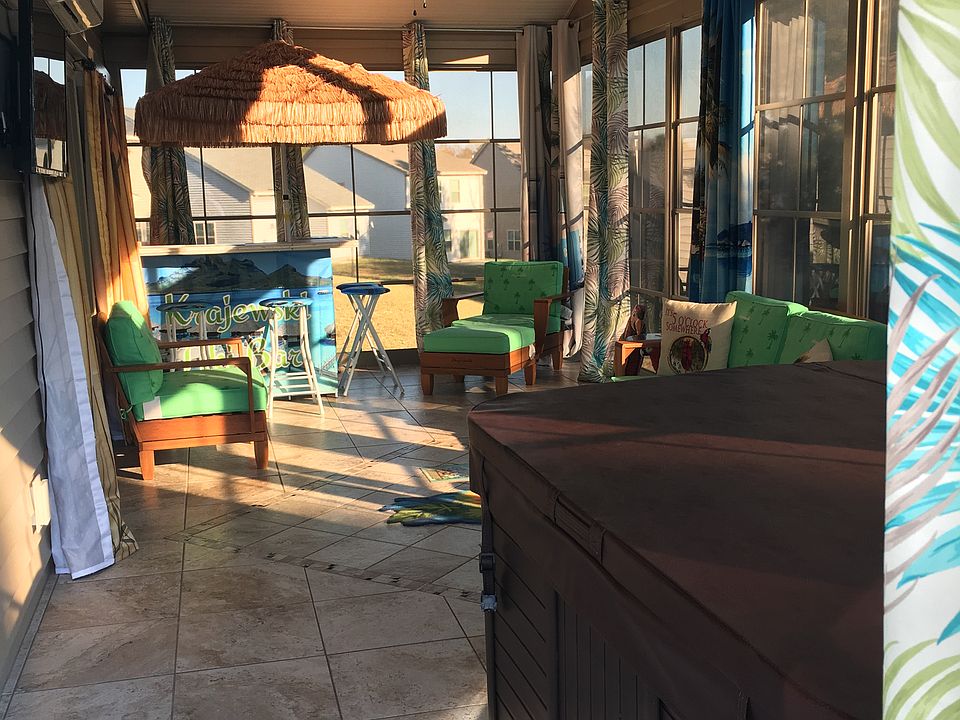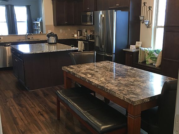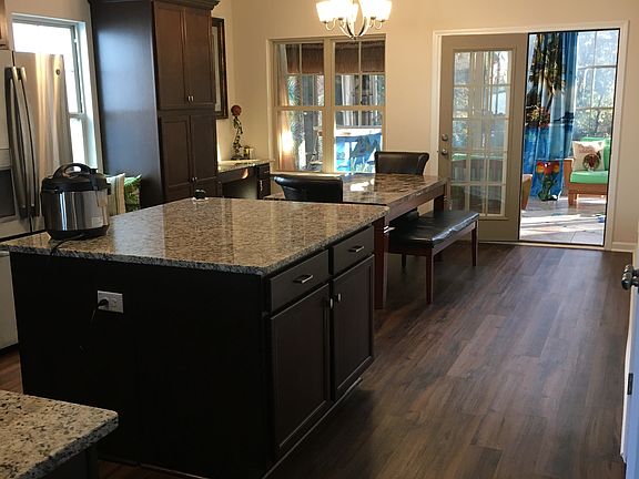 - Kitchen: Counter Tops-Granite, Eat In, Pantry, Island, Cabinets-Stained, Floors-Laminate, Backsplash-Tiled, Recessed Lights