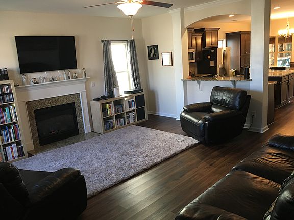 - Living Room: Fireplace, Molding, Floors-Laminate, Ceiling Fan