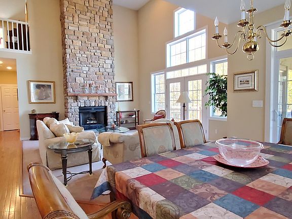 Meticulously maintained and spacious home sits on a quiet horseshoe-shaped block and has 5 spacious Bedrooms, 5 Bathrooms (4 Full). From the moment you walk in you'll notice the open floor plan and striking attention paid to details like the well-appointed office, great room wall of windows, two-story stone fireplace, cathedral ceilings and hardwood floors. The finished walk-out basement is ideal for entertaining. Large and complete it offers an exercise room, granite top bar, large bedroom and full bathroom. You and your guests won't be disappointed. Community offers Beaches, Tennis, Golf (18 hole), Lakes, Fitness Center, Security, trash pick-up and an Outdoor Pool. A lot of home for these low taxes! Call your agent today!