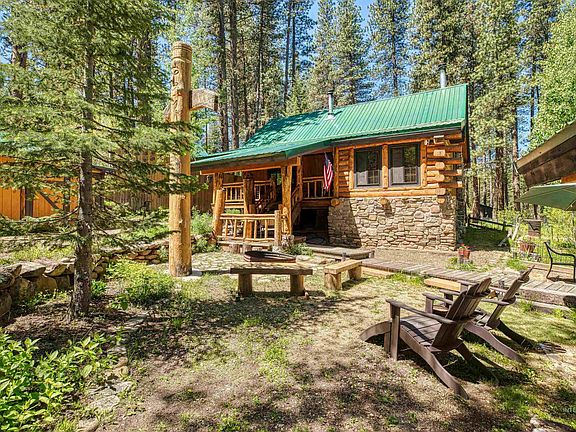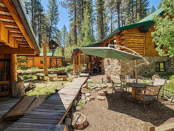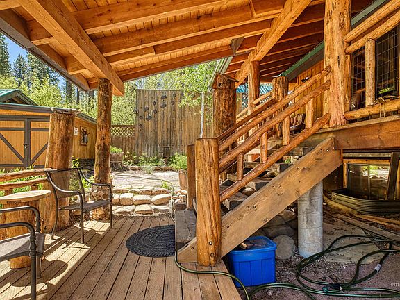 Welcome to the serene embrace of your Tranquil Mountain Retreat. This magnificent log/timber frame cabin, stands as a testament to fine craftsmanship, born from the hands of a master builder/artist. Each nook offers an invitation to peace—a space for the weary soul to unwind amongst nature's whispering pines. Expansive decks, the front & back, await your leisure. Here, a rocking chair becomes from which you survey the mountain's majesty & the air imbued with the scent of timber, earth and wildflowers. You may even hear the woodland creatures scurrying around in the forest. The property adjoining is BLM (Public lands and open spaces) Within the home a cozy sitting room beckons with the soft promise of solitude, where thoughts can unfurl & dance upon the pages of books promised to be read. The four bedrooms, each a sanctuary of rest, exude a warmth only found in such Mountain Havens. The artisanal timber pieces that stretch across the ceilings are not merely structural elements THEY are the essence.