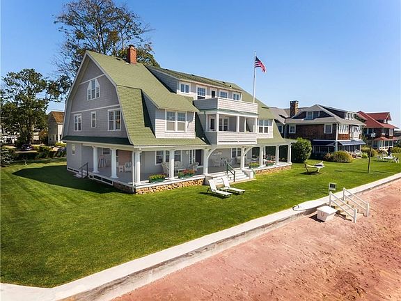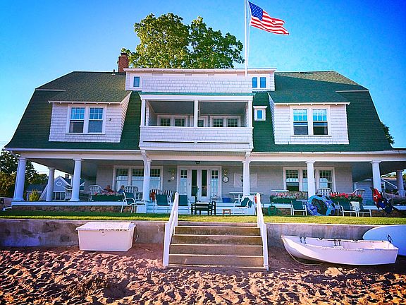 Paradise and prestige! This beautiful and historic 9-bedroom 6.5 bath beachfront estate on Long Island Sound is a potential dream home. It is located in Madison CT, minutes away from a quaint downtown, the Madison Beach Club and a vibrant involved community. Three generations have enjoyed this romantic waterfront home boasting 125 linear feet of beachfront and ample space to comfortably embrace the entire extended clan. The environment beckons visitors to enjoy a multitude of waterfront experiences; from a morning cup of coffee under the protective covering of the homesG 65x 31 foot wrap around porch to a surfboard ride out to your moored boat to enjoy an afternoon on the water. Upon returning with your catch of the day, prepare your dish at your outdoor prep area and move directly to your grill; all the time enjoying views of the Sound. Inside one canGt help but be taken by the endless beadboard, spacious rooms, and high ceilings creating a comfortable, yet grand retreat. A 35 x 16 eat-in, granite kitchen provides plenty of room for gatherings and opens to both a 22x11 Dining Room and 29 x 19 Family Room; both overlooking the homes covered porch out to Long Island Sound. Adjacent to the Family Room is a 16x14 Den with full bath which could easily be converted to a first floor bedroom suite. Upstairs 9 bedrooms and 5 full baths offer a comfortable setting for extended visits. Two bedrooms offer covered balconies boasting views of the Sound out to the Thimble Islands.