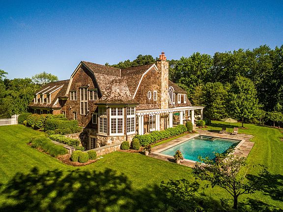 Magnificent, Nantucket-inspired masterpiece for the connoisseurs of quality and astounding modern luxury amenities. Grandly proportioned interior highlighted by exquisitely appointed formal rooms, captivating family spaces, sensational gourmet kitchen, and expansive walk-out lower level with home theater, billiard room, tasting room with enormous wine cellar, and sauna. Extensive millwork, stunning architectural details, wide-plank Brazilian cherry flooring, expanses of glass, ten-foot ceilings, and high-tech systems reflect the highest standard of quality. Pergola-covered wrap-around flagstone terrace offers steps to a spectacular in-ground pool/spa with stone decking. Beautifully landscaped with sweeping backyard, lush lawns, and specimen trees and planting. Possible Tennis court site. Complete privacy on over 4 acres with gated electronic entry and perimeter deer fencing in prized estate area minutes to Bedford Village. Convenient to Armonk, White Plains and Greenwich.
