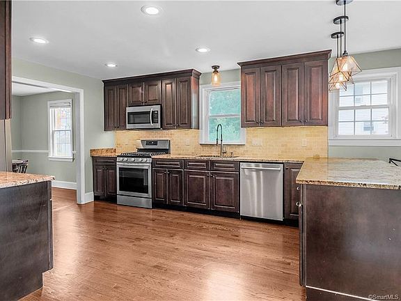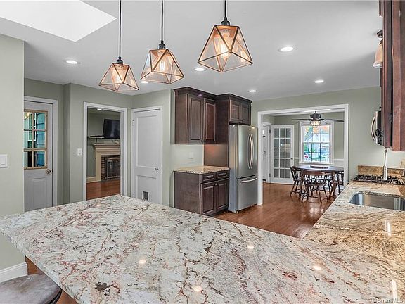 Charming Exanded Cape in Glenbrook. The main level has a desirable layout complete with a spacious living room with fireplace, dining area and large kitchen. The kitchen has been beautifully updated with stainless steel appliances, granite counters, custom cabinets, breakfast bar, backsplash and lighting. Upstairs has two good sized bedrooms and a full bath. Both bathrooms have been recently redone. New recessed lighting on main level. The unfinished basement has great potential to add some livable space. Sliders from the kitchen lead to composite deck and bluestone patio that provides great outdoor living. Nice yard is fully fenced. Upgraded 200amp service as well as new copper and pex plumbing pipes throughout. New ductless split system A/C on each floor cools the entire home. Located in walking distance to the train. A must See!