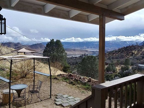 Cute 2 Bedroom, 1 1/2 Bathroom GET-AWAY in Wofford Heights with amazing Lake & Mountain Views. This home has been Meticulously taken care of and periodically used as a vacation rental. The Kitchen has white Cabinets, white propane Stove and is open to the Living Room. The Bedrooms are on opposite sides of the home with one bedroom having direct access to the half bath with a new Vanity. The Hallway Bathroom also has a new Vanity. All Windows have been upgraded to dual pane windows. There is a Tuff Shed that has plenty of room for yard tools. This home sits on Two parcels totaling .87 acres of Privacy, Lake & Mountain views and you can even hear Tillie Creek in the Winter & Spring months. Furnishings inside/outside to be negotiated.