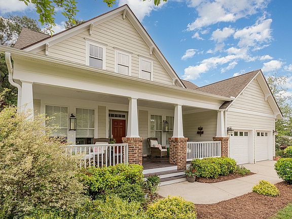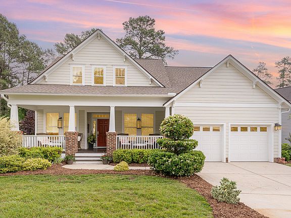 This stunning David Weekly home in desirable Cary Park is priced WELL BELOW APPRAISAL! Bright light welcomes you from the many windows, and well-designed spaces in this home. Enjoy your morning coffee on the extra-deep front porch, and your afternoons on the back deck, with a view of the woods and pond (prevents future development). Downstairs master suite with newly renovated bath with premium touches! Highly desirable West Cary schools. Optional membership to the Cary Park Swim Club. Located on a quiet, cul-de-sac street, it's an easy walk to the 2-mile paved walking path around the lovely neighborhood lake, Cary Park Town Center (Andia's Ice Cream), and a short distance to the American Tobacco Trail. Quality details throughout the home include granite countertops and soft-close hinges and pull-out shelves in the kitchen, site-finished hardwoods in the downstairs living spaces, Pottery Barn vanity with marble top and non-slip flooring in the newly renovated master bath, grasscloth wallpaper and silk drapes in the dining room, custom wainscotting in the powder room, and new Shaw carpet (with warranty) in upstairs and master. Expansive storage with walk-in eaves and large attic. The pristine crawl space has new insulation, moisture seal, and dehumidifier. Brand new water heater, gas range/stove, and microwave. Roof replaced in 2017. Smart home - with most appliances, Nest thermostats, and new garage doors accessible through an app and wired throughout with CAT5E for excellent streaming and gaming. Fresh paint inside and out in 2022.