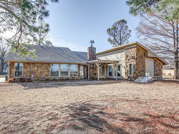 This custom built and spacious single story was designed with a flexible floor plan that offers 4 bedrooms one of which could work perfectly as media room or office. A formal dining room is also positioned to work well as an office. The open plan has an impressive stone wood burning fireplace and wooden accent ceiling in the family room and kitchen with large dining area overlooking the open backyard.. Fully renovated hall bath with granite counter and tiled walk in shower. Primary bedroom has access to covered patio. New Oven/range. Roof new in 2022. Newer exterior paint. Laundry room has an office niche that could also work as hobby space or planning area. Beautiful cul-de-sac lot with mature trees backs to open space.