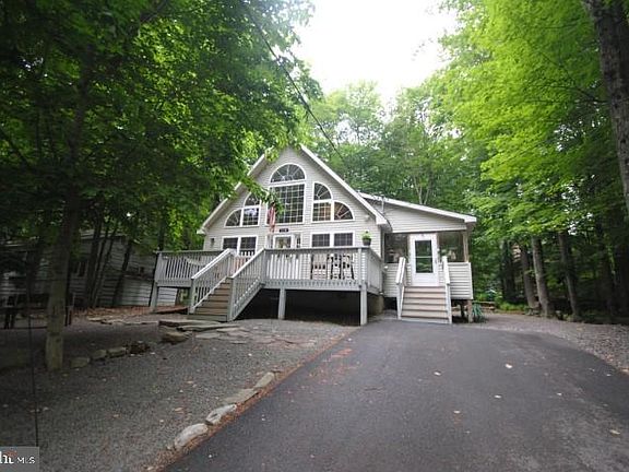 Oversized Chalet in the gated, amenity filled community of Arrowhead Lakes. This 3 bedroom, 2 bath chalet has lots of living space. Main area has a living room with wood walls, a stone faced propane fireplace, and cathedral ceilings. Dining room has sliders to the screen porch. Kitchen has an eating bar. Closet has a washer/dryer hook up. 2 bedrooms are on the main level and a full bath. Upstairs has a primary bedroom, 1 full bath and a loft. Outside has a front deck, screened porch, paved driveway, shed, boat and a golf cart to get you around the community. Home has lots of windows! On community sewer! Close to all amenities including the beaches and outdoor pool. Arrowhead Lake is a gated community with security, 3 heated pools, 2 lakes for fishing/swimming and boating, tennis courts, clubhouse, new lodge, fitness center and much more. Activities included just to mention a few are bonfires, carnival, zumba, water aerobics, swim team, potluck dinners, all you can eat breakfasts and summer camp.