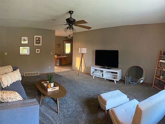 PERFECT FOR YOUR FAMILY - Upgrade to a family and pet friendly home that boasts a fenced in back yard allowing peace of mind if you have kids and/or pets. The large backyard has a patio with a beautiful sunset view — no backyard neighbors! 2 car attached garage with plenty of shelving space for storage. The partially finished basement can serve as a family room or play area and includes a closet and lots of extra shelving for storage! There is ample unfinished space with loads of potential for additional entertainment or living space. Kitchen/dining room area are large and open with loads of cabinet and countertop space. This home is located on a caul-de-sac in a family-friendly neighborhood. Upstairs bathroom with recently installed tub. Downstairs 3/4 bathroom needs updating but is functional and includes a shower. Living room is open and all bedrooms and laundry (stackable washer and dryer) are on the main floor. Home comes with a water softener. This house is ready for you to make it home!