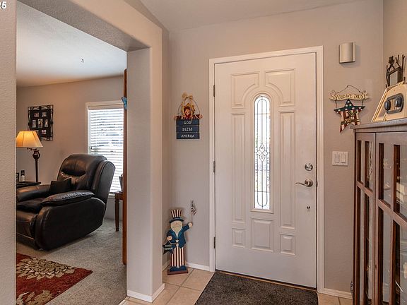 Welcome to 110 Morning Crest in Roseburg’s premier gated Highlands Vista community! This beautifully maintained single-level home offers a perfect blend of comfort and elegance with breathtaking valley views from nearly every room. Situated on a quiet cul-de-sac, the home provides both privacy and convenience. Inside, you’ll find 3 bedrooms and 2 baths, including a spacious primary suite with a large walk-in closet, double sinks, soaking tub, and walk-in shower—all while overlooking sweeping vistas. The versatile floor plan features both a living room with a cozy fireplace and a family room, plus a dining area that opens to the deck for seamless indoor-outdoor living. The kitchen is a cook’s delight with oak cabinetry, custom tile backsplash, island, built-in oven, and microwave. Vaulted ceilings, skylights, and abundant natural light create a bright and welcoming atmosphere throughout.Step outside to enjoy the fenced yard with lush landscaping and a vibrant flower garden, the perfect setting to take in the panoramic views. The oversized garage offers plenty of room for vehicles and extra storage, and the laundry/mud room adds everyday convenience. As part of the Highlands Vista community, you’ll also enjoy access to a clubhouse, pool, and secure gated entry—making this home truly special.