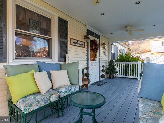 Merchantville expanded Cape Cod, set on a Generous 1/3 acre lot and walking distance to downtown. Offering 5 Bedrooms and 2 Full Baths, you'll find two primary bedroom options, one on main floor and one upstairs. This property offers lovely curb appeal with vinyl siding, spacious Driveway parking and offers a newer expansion of a covered composite front Porch which is a great place to enjoy views of the town's holiday parade or to greet the masses of tricker-treaters you'll get with this wonderfully located home! As you step inside, you'll immediately see the refinished original Hardwood floors which run throughout most of the home. The completely remodeled Kitchen has been opened into the Dining room to offer plenty of space for entertaining with Tons of Cabinets, built-in pantry, Corian counters, dual sink, Stainless steel appliances, Island with pendant lights and peninsula seating! 2 banks of bay Anderson windows drench this room with natural sunlight and Original corner built-ins adorn the dining area as an ode to the charm of yesteryear. Beyond you'll find a huge Living room with more built-in display cabinets and a wood burning Fireplace! With 2 primary bedroom options, this home could easily accommodate an in-law option as the main floor features 2 Bedrooms (primary offers a walk-in closet) and upstairs boasts 3 spacious bedrooms, all upgraded with ductless mini splits! The upstairs primary bedroom holds 3 closets and additional baseboard heating. Both full baths are gently updated, yet still offer the 1950's charm. The Basement features a finished Den with a built-in Bar along with TONS of Storage/workshop rooms plus an additional Crawl space under the living room. True walk-out basement to the rear yard, French drain with sump pump, dual Electric panels and laundry area. Get ready to host summer BBQ's! Fully fenced in rear yard offers a raised aggregate patio with exterior built in Fireplace, above-ground Pool, fire pit area and access to the attached Garage. This property is being sold in present as-is condition, but sellers are offering a 2 year (yes, TWO year!) HSA Home Warranty with additional roof leak protection for buyer's complete peace of mind.