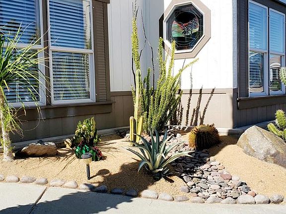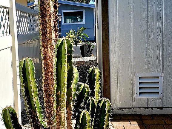 This 2 bedroom home plus a great den is always kept meticulously cleaned and maintained. The custom interior paint throughout the entire home inside and outside, landscape design and location in the center of the community make it very desirable. Some of the upgrades include 2019 Solar by Sunrun, new HVAC, new washer and dryer, newer water heater (2013), dual pane windows, new garbage disposal, approved fence, new braided water lines and taps, and more! Just a few treasures will be taken with the sellers. A list will be provided. OH! And the best Meyer lemon tree in the community has branches that hang over on your side! Truly a beautiful home.
