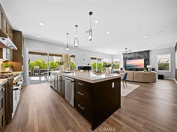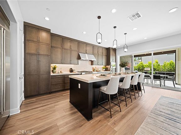 Located at Toll Brothers The Meadows community with an amazing lifestyle surrounded by hiking and biking trails, swimming pools, sport park and kids playground. Walking distance to the central main park and was built by the luxury home builder Toll Brothers. 5 bedroom and 5 bathroom single family house with a loft upstairs. High ceiling foyer and open floor plan from living room to dining room with two multi-slide stacked glass doors open leads you to the California room and outdoor living space. Motorized rain and storm proof aluminum louver patio structure with integrated LED lighting. Sunroom with 3 motorized shades for privacy and to create extended living area. The kitchen features stainless steel appliances which include built-in range with ovens, hood, dishwasher and built-in refrigerator. Marble effect porcelain slab wall with custom entertainment unit cabinetry. Wood flooring through whole house and walnut wall in entry and great room. Master Bedroom with extend retreat room and three side windows surrounding and a huge walk in walking closet and upgraded shower tile in all bathroom. Paid and owned solar panels and system. Highly regarded saddleback valley unified school district and close to many private school. Home Depot, fitness center, The Foothill shopping center and Irvine Spectrum Center is close by.