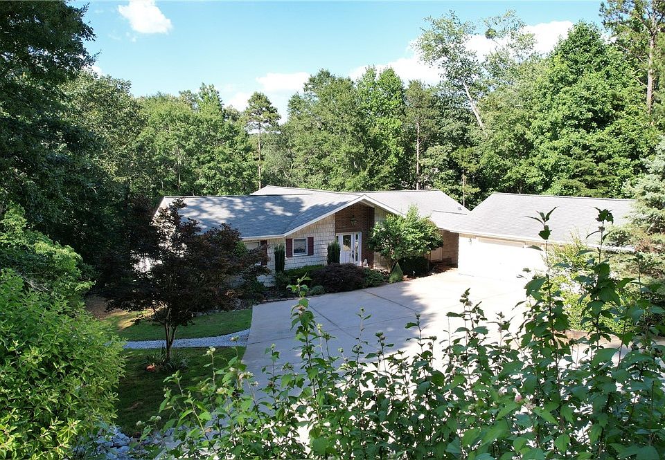 Deep Water Location Lake Hartwell Ranch Style Home with a full basement with covered slip boat dock in beautiful Seminole Point. Enjoy the very best of both worlds of lake life here at 110 Muskhogean Rd with a covered slip boat dock in a cove setting away from heavy main channel boat traffic for enjoyable swimming and relaxing BUT you still have 15 feet of water depth off the back of the dock for DEEP WATER. Seeking a private setting? Escape to this 1.56 acre lake lot with absolutely gorgeous flowering perennials and lovely landscaping welcoming you as you start down the long circular drive which provides SO MUCH parking space for guests in addition to the two car detached garage. This home (never before on the market) was built in 2003 and quality construction is apparent. The main level offers a lakeside great room with tongue of groove vaulted ceilings and exposed beams with dual glassed doors opening to the lakeside deck with synthetic decking for longevity. The master is on the main level with a private bath and a lakeside guest bedroom has direct access to a second full bathroom which also has access from the large walk in laundry room. The kitchen includes a full large appliance package, a breakfast bar and it is open to the living room. A dedicated lakeside office with loads of natural light completes the main level perfectly. The lower level has two family rooms each with glassed doors on the lakeside plus a third bedroom with a private full bath with walk in shower. A large portion of the lower level is unfinished for storage and workshop potential. The walk to the shoreline is quite gentle and a future owner could choose to have a concrete or other type of cart path installed if desired. This is a residence that is not visible from the road; please do not walk the property unless accompanied by your realtor with a confirmed appointment.