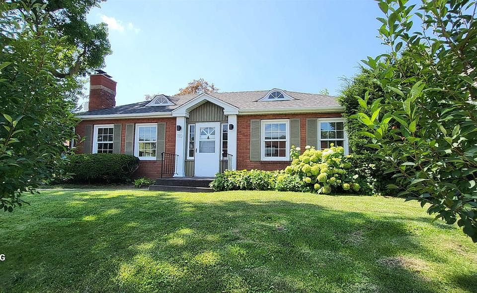 This perfectly proportioned downtown jewel box is a short walk to the city park, Main Street, and the university. This classic all-brick two-bedroom ranch-style home offers comfort and functionality. The main floor features an updated kitchen and bath, as well as sunlit living and dining areas. A bright 11.5' x 17' enclosed rear porch provides additional living space, ideal for a sunroom or three-season room. The home includes a 14' x 22' one-car detached garage offering ample storage or workshop potential. Beautifully planted perennial gardens surround the home. The full basement is cement-poured with a half bath, making it suitable for finishing as additional living space. All new roof and gutters on both home and garage in 2025, and recently replaced Andersen windows throughout.