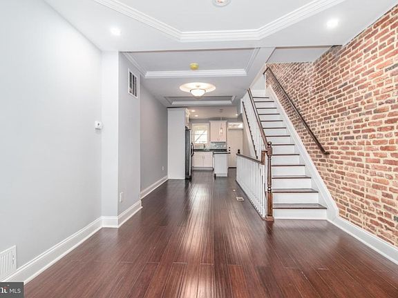 Beautifully Renovated GORGEOUS 3 Bedroom / 3 Bathroom Brick-Front Rowhouse with 2-Car OFFSTREET Rear Parking Pad. The home features gleaming wood floors, open-concept floorplan, gourmet kitchen with white cabinets, granite countertops, stainless steel appliances, glass subway tile backsplash, kitchen island, breakfast bar with glass pendants. Gorgeous upstairs bedrooms with hward wood floors and two baths. Tons of details like tray ceiling, exposed brick, soft paint palette and more! Finished lower level with bedroom and full bath. Balcony and again, PARKING! THIS WILL NOT LAST!