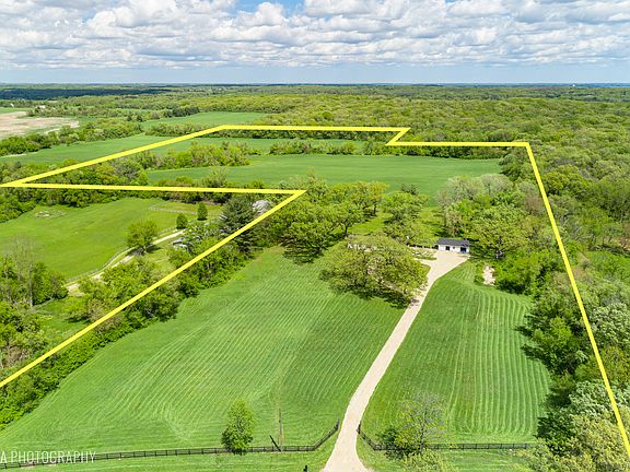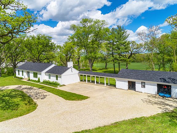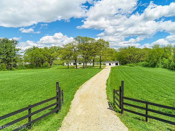 Welcome to The Ranch at 110 North Fleming Road in Bull Valley. This stunning farmhouse sits on 40 gorgeous acres of rolling hills. The completely renovated home was brought back to life from the ground up in 2022. As you step through the front glass doors onto the French oak flooring you will feel right at home. Making your way into the large updated gourmet kitchen with white shaker cabinets, beautiful quartz counters with an oversized island. The real brick backsplash overlooks the 6 burner range with custom hood and floating shelves. Large farmhouse sink that has a perfect view out to the back of your land. All appliances are Kitchen-Aids professional lines. Your spacious family room has a white brick gas fireplace, with custom benches on both ends and an oversized sliding glass door with another amazing view of the property and constant wildlife. Making your way to the rest of the house you have 3 bedrooms all with walk-in closets, two full bathrooms both updated and a marble floored laundry room equipped with a utility sink. Every inch of the home with the exception of the foundation and some framing has been replaced. Windows, HVAC, Insulation, Roof, Water Heater, Plumbing, Electrical etc all new in 2022. As you make your way outside to 2 horse stall barn and tractor garage you will also notice the 400 foot gravel driveway and 220 foot circular drive that was laid down last April. The Barn has its own separate electrical panel if you would like to add on or construct more outbuildings. The home sits on 5.9 acres and your remaining 34.1 acres is grass mixture currently being cut and baled for Hay three times a year. The ideal setup for any horse lovers to easily fence and turn into pastures. This property has its own access to the Bull Valley equestrian riding club trails and the Northeast part of the property borders over one hundred acres of conservation land. Do not miss out on this incredible opportunity to drive through your wooden gated entrance and call this piece of heaven on earth your very own. This property was carved out from the larger 300 acre parcel that sold for 2.25M in 2022 and then the remaining acres were turned into conservation land.
