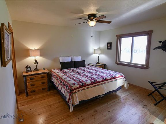 You are going to love this 5-acre parcel with a lovely home, a charming barn and positioned right next to a large pond (which was originally a slough off the Sun River). It is just off the beaten path in rural Montana near hunting and fishing on the Sun River and easily commutable to Great Falls. The home has a great country style. Kitchen has custom cabinets, slab wood counters, newer stainless steel appliances and real slate floors. You'll enjoy an expansive deck off the master bedroom that takes in the butte and territorial views along with views of the pond. It has an architecturally attractive floor plan offering soaring ceilings throughout the home, clever nooks and storage spots. The seller has added genuine slate in many rooms and some custom paintings on walls and doors. Home has solid wood doors, upgraded hardware, a slate fireplace, ceilings finished with tongue and groove pine. Views of the front range of the Rockies. Jetted tubs. Cedar-lined, oversized closets.