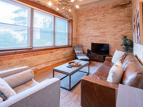 Situated in the historic Story Clark Piano Factory, this fully furnished condo showcases 14 ft. exposed ceilings and windows, original beams, brickwork, and wood floors. Outside, a private patio provides a gas grill and dining area for warm-weather gathering. Guests also enjoy elevator access to the shared rooftop deck an incredible spot to take in views of the channel, sunsets, fireworks, and the iconic Musical Fountain.