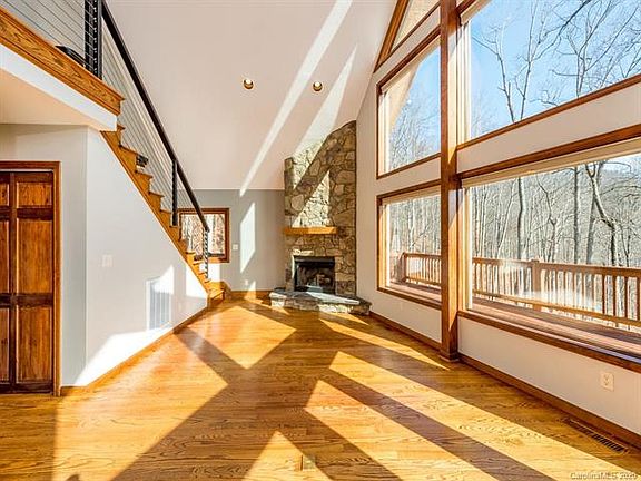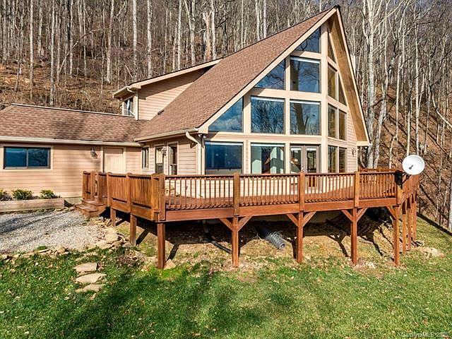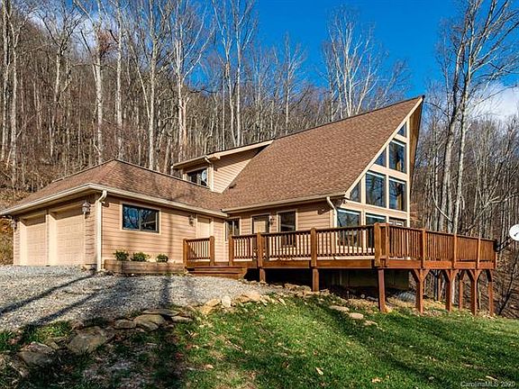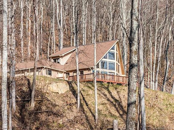 This A-Frame just off Reems Creek is not one to miss with floor to ceiling windows looking out to a spectacular mountain view. Privacy on 39 low maintenance acres yet only 15 miles from Asheville (and NO 4WD required!). Enjoy the massive stone fireplace and wrap around deck. This home is packed with loads of updates including an on demand hot water heater, professional 60" range/oven in the gourmet chef's kitchen, whole house generator, and custom electric blinds. Hardwood and slate floors throughout. Huge master suite with a private balcony. In addition to all of this there is fast internet, and a completely flat spot that is out of steep slope where you can build a guest house.
