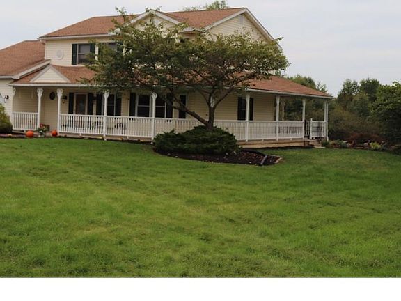 Country Style Colonial with full wrap around porch to enjoy the scenery of the property... especially the animal life in the backyard. This home has over 1.6 acres of land for your enjoyment. Located in an area of conveniences, but giving the feel of pure country. This home houses 4 spacious bedrooms and has over 2700 sq feet of living space. Starting with the center hallway foyer with stain glass entry door, you can enter the large Living room with Bay window. The layout is ideal for large gatherings with the DR being connected to both the Kitchen and Living Room and has a wonderful view of the backyard. The Kitchen has an island, granite counters, tiled backsplash, doubles sink, Bosh dishwasher, Pantry and builtin microwave. Adjacent to the kitchen is the Family Rm, with brick, wood-burning Fireplace, bay window with marble top, and entry to back patio. The second level houses four bedrooms all nice in size with walk-in closets. The main bedroom has a walk-in closet and full bath. The back patio has extra support for a hot tub; the 2 car garage has a service door and garage openers, laundry has a utility sink and cabinets; stain woodwork throughout; public sewer just installed in September; full basement with recess lighting and walkout; pulldown attic steps. Great home, Great price, Great location!!! Deer visit the property often and can be seen in last photo.