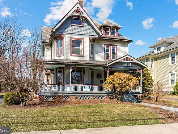 Welcome to 110 N. Lincoln Ave in the heart of Newtown Borough. This beautiful Queen Anne style home has many original features along with all the mod-cons. You enter from the walkway to a huge wrap around porch. The grand foyer offers a chestnut staircase, a window seat and a hand carved newel post. A nice sized living room has pocket doors leading to the family room. This room offers wonderful views through the oversized windows and all the comfort of a custom fireplace in Arts and Crafts style with Moravian tiles, representing the seasons and the Tree of Life. The family room also provides access to the first floor powder room. An ample sized dining room leads through to the only addition to the original building, a beautiful gourmet kitchen and breakfast area with butler’s pantry housing some of the original cabinetry. The turned staircase leads to the second floor which offers 2 bedrooms, a hall bath and a primary suite with a sitting room and full bath. A third floor main suite has a large bedroom, a good sized bathroom, a huge closet and an office. The property is almost half an acre and has some beautiful trees and horticultural specimens that you can enjoy from the bluestone patio. The back building is a three car garage, a wood work shop, a potting shed and attic. This home has been lovingly restored and cared for by the current owners (only the 4th owners since the property was built in the late 1890s). Whether it’s cozy nights curled up by the fire, a fine day reading on the porch or a balmy evening on the patio with a glass of wine, this home offers it all. Welcome to 110 N. Lincoln Ave… Maybe you are home already!