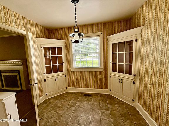 What a gem!!!! JUST LISTED in Colerain, NC!!! This vintage bungalow is super cute & offers a spacious living room w fireplace (we saw oak floors under carpet)! Plus a dine in kitchen w built in display cabinets and a retro ironing board. Two bedrooms, one bath, attic storage and a nice in-town yard! Under the rug in the hall are the remnants of the original floor furnace (with some equipment under the house). Two gas regulators are seen outside of the home but no above ground gas/oil tank visible. Possible underground storage tank (sellers are unsure). Some oak floors were seen under carpet and in closets; condition is unknown.