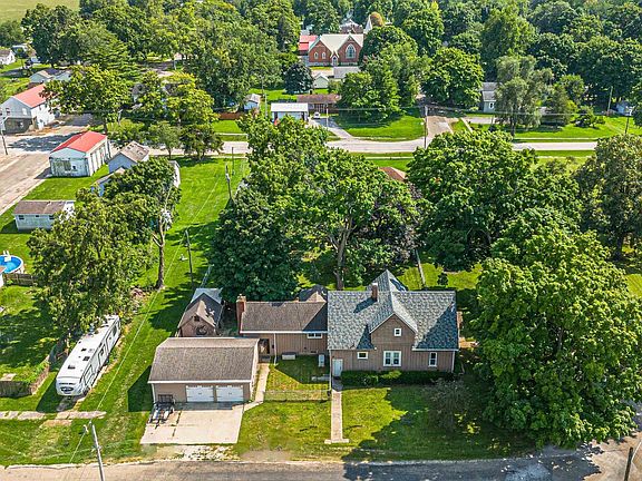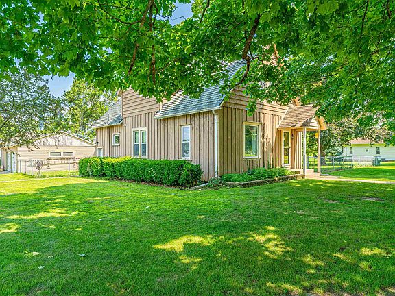 WOW! This expansive 4 bedroom, 2 full bath two story wood sided small town home is perched upon a massive 180X120 fenced corner lot and features many, many desirable features both inside as well as outside! Main floor of home boasts an inviting foyer host to an ornate open staircase, comfortable front facing living room with overhead wood beams, gracious formal dining room with hardwood flooring, ample natural light, and charming built-ins, bedroom area, striking equipped updated kitchen with a center island, granite countertops, heated tile flooring, and an adjacent additional dining area, impressive sunken rear family room with cathedral ceilings, gas log fireplace, built-ins, and a rear facing exterior access point, full hall bath, and a beautiful 12X11 side facing enclosed porch. Upstairs, you will find three additional roomy bedrooms (one features laundry facilities) and a second full tiled bath with a whirlpool tub. Property also features captivating natural woodwork, large usable basement, various replacement windows, newer metal roof on majority of home, efficient geothermal heating and cooling, Generac generator, rear concrete patio, 2+ car detached garage, large older shed type structure with an attached chicken coop, radon mitigation system -- the list goes on! City water/private septic system (system replaced in 2020 per seller). Olympia school district. Affordable space both inside as well as outside awaits you and yours with this choice Tazewell County property!