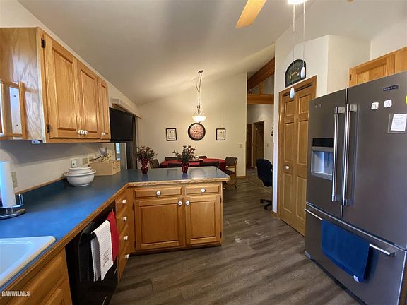 Welcome home to 110 N Morley, at the end of the winding driveway you'll find this spacious ranch home situated on 8.8 acres. A very private property with peaceful/relaxing views. This home is designed for convenient main floor living with 3 Bedrooms, 2 1/2 baths and laundry all within easy access. The main level of the home also features vaulted beamed ceilings, limestone wood burning fireplace and an abundance of windows. The generous kitchen has plenty of cupboards and counter space with great views from the large kitchen window and a perfect place to grow your own herbs. The oversized Master bedroom include private ensuite with walk in closet, whirlpool tub, double sinks, water closet with shower, an additional closet and patio doors to the deck. Lower level with family room, wet bar, large patio doors to lower cement patio, two home offices/hobby rooms, full bath, a 30x27 storage area, 18x13 utility room. A 3 car garage with one walled off for your workshop. Large fenced in back yard for your dog or pony .This is a rare find in the Galena Territory. This property is zoned for horses.