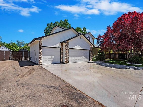 Beautiful 4 bed, 2.5 bath home in quiet subdivision located on a corner lot with no backyard neighbors. Enjoy ample storage options including a three-car garage and an oversized shed. The expansive driveway extends seamlessly into the backyard, providing abundant space for all your toys. Relax in the spacious shady backyard with large patio covering and mature trees. Many upgrades with fresh exterior paint, new HVAC, new carpet, and roof replaced in 2017. The living room, family room and primary bedroom are located on the main level with 3 bedrooms on the second level. Convenient central Nampa location close to schools, parks, shopping and more.