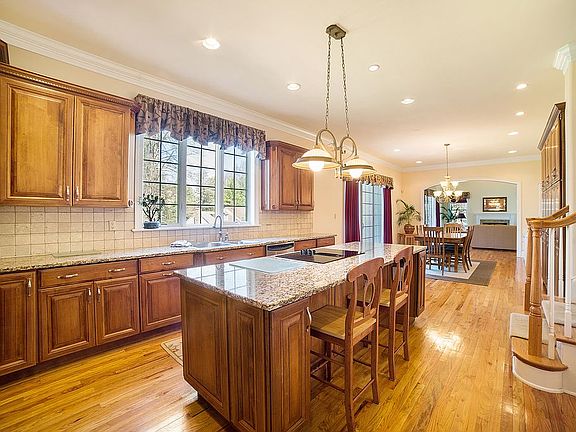 Ideal Location! This home is close to the train, schools, shopping, dining, the playground & walking trail but tucked away in this beautiful park-like setting. This 18 yr young home has the amenities needed for today~s living! A 2 story light-filled entry w/ Palladian window & winding stair greet you as you enter this home. A frml living rm w/ large windows & gas firepl. on one side of the entrance and a frml dining rm on the other. As you walk back through the hall past the powder rm, hall closet & stair to lower level, you reach the OPEN FLOOR PLAN area w/ the large gourmet granite kitchen w/ island seating, plenty of tall wood cabinets, s.s appliances, & the informal dining area to the vaulted clg. FAMILY ROOM w/ gas fp, elevator & deck. to the vaulted clg. FAMILY ROOM w/ gas fp, elevator & French drs to the deck; perfect for BBQ! All areas have splendid views overlooking beautiful grounds which feat. footbridge, shallow babbling brook, stone wall, grassy knoll & patio. These views can also be had from the new Glass Elevator (to all floors)! Adj. to the kitchen on the other side is the 2 car attached garage, a back stair, side entr. & laundry rm w/full size side by side washer/dryer, sink, cabinetry & large window. 2nd Floor: The Main Bedroom feat.dble door entry, tray ceiling with recessed lighting & large windows on 3 sides as well as the adj. bonus room that can be used as an office or sitting room w/ 2 large walk-in closets. The ensuite bathroom features a soaking tub, stall shower & double sink vanity. The Second Main Bedroom has direct access to the glass elevator, windows on two sides, an office/sitting area & walk in closet with ensuite bathroom with oversized stall shower, dble vanity sinks & heated tile floors. Guest rooms feature one bedroom with ample closets and a tub shower and another room that can be used as an office or a hobby room. 3rd flr: is unfinished & ready for even more living space. Dormers are in place as is the fully finished stair leading to this space. Lower level feat. lrge walk out patio w/ French glass doors and big windows filling the space w/ light. Entertaining is easy with the Media Rm w/ builtin speakers & proj. screen, bar Area & Game Room, a full bth & addtl. strg.