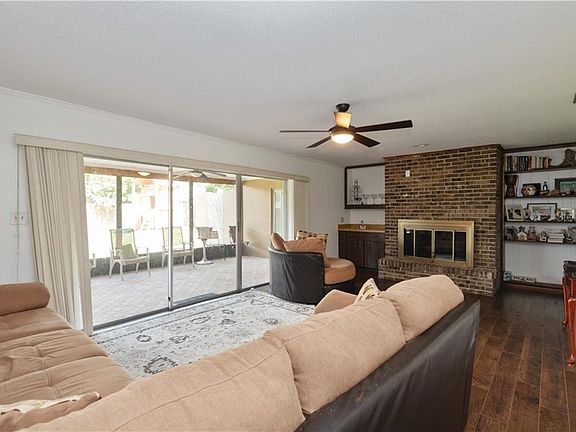 Bring your imagination. This beautiful home tucked in the Exclusive 24 hr Manned Gated Community of Spring Lake Hills provides access to two lakes: 'Spring Lake and Lake Destiny". Enjoy large family room with Wood Burning Chimney and wet Bar, great view of large patio and oversized screened porch. Over 1/3 acre lot. Master bath features dual sink bathtub, separate shower and view of an atrium waiting for you to add your touch ups. Plantation shutters throughout. Community amenities include Tennis courts, playground and Community Park. Over Newer laminate floors. Bring your imagination and make this house your own. priced to sell.